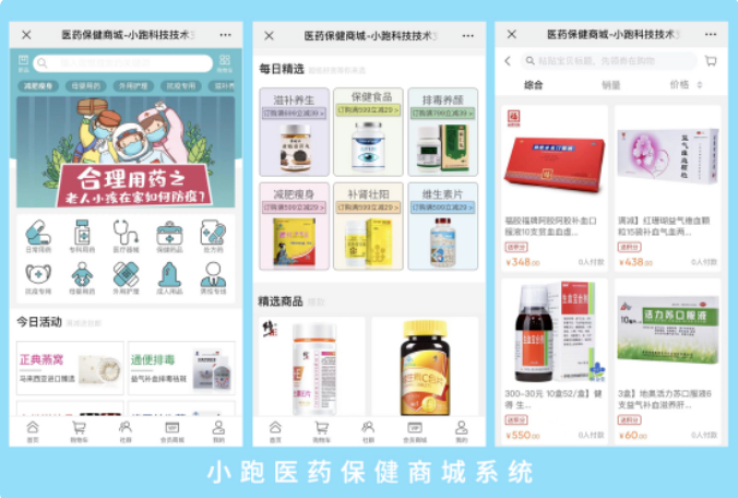 醫(yī)藥保健商城系統(tǒng)開發(fā)能夠完成網上購物配送、醫(yī)藥資訊、在線答疑、周邊藥店查詢購買等功能。通過互聯(lián)網面對更多的用戶,服務更多的群體。對于醫(yī)藥行業(yè)發(fā)展有巨大的幫助。如果您也有開發(fā)醫(yī)藥保健商城系統(tǒng)APP或小程序的想法,歡迎與我們小跑科技聯(lián)系。